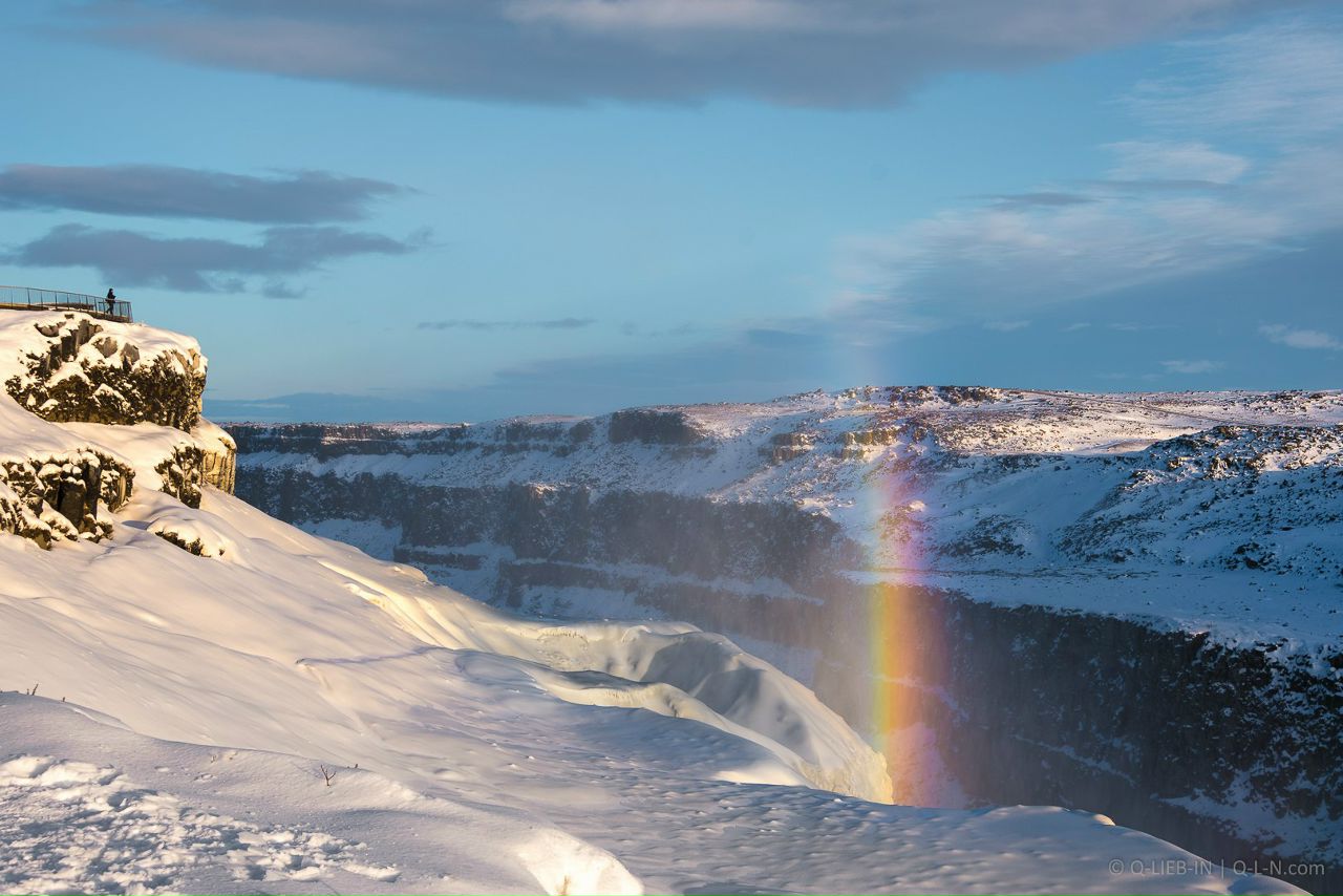 Вертикальная радуга над водопадом Деттифосс, Исландия