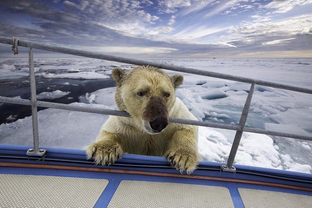 Любопытный белый мишка