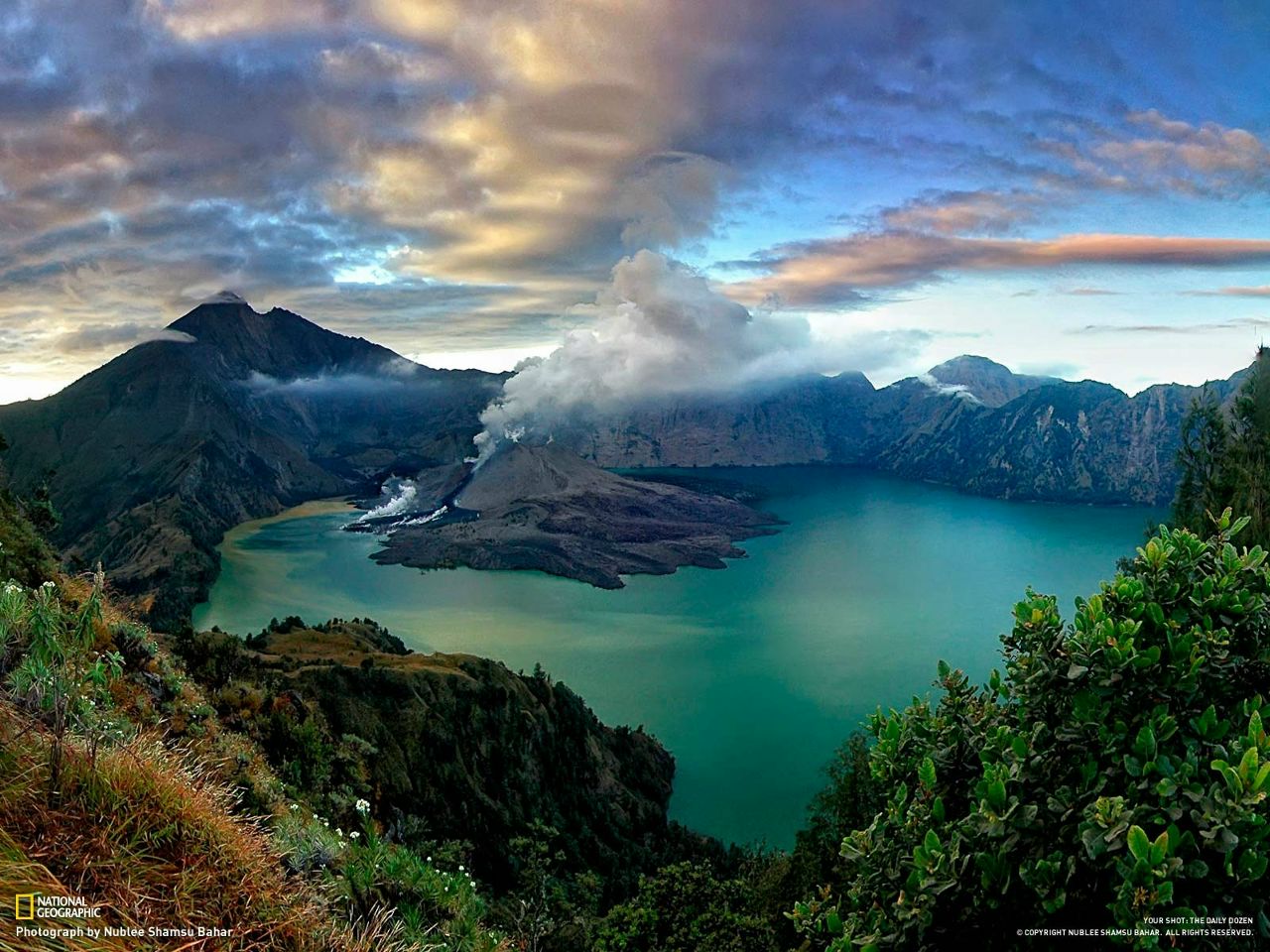 Остров Ломбок, Индонезия знаменит не только своими живописными пейзажами, но и тем, что здесь находится действующий вулкан Ринджани, третья по высоте вершина Индонезии (высота 3726 м, последнее извержение — 2009 г.)