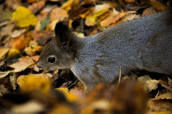 Белка в осеннем лесу
