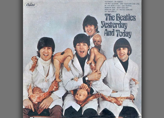 Многострадальный сборник The Beatles с трижды проклятой и запрещенной везде, где только можно, обложкой. Ее быстро заменили, и все же часть тиража успели распродать в исконной форме. Теперь те экземпляры стоят очень солидных денег.
