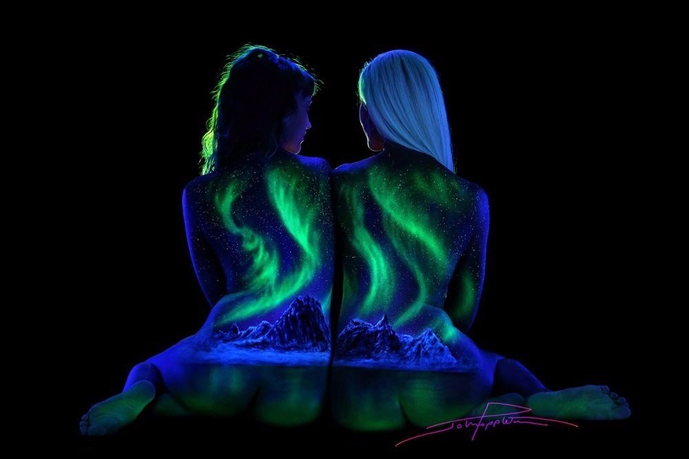 Для создания фантастических пейзажей Джон использует временные флуоресцентные краски, которыми он разукрашивает тела моделей и фотографирует их в скромных позах на чёрном фоне, чтобы создать настоящие произведения искусства, которые являются уникальными.