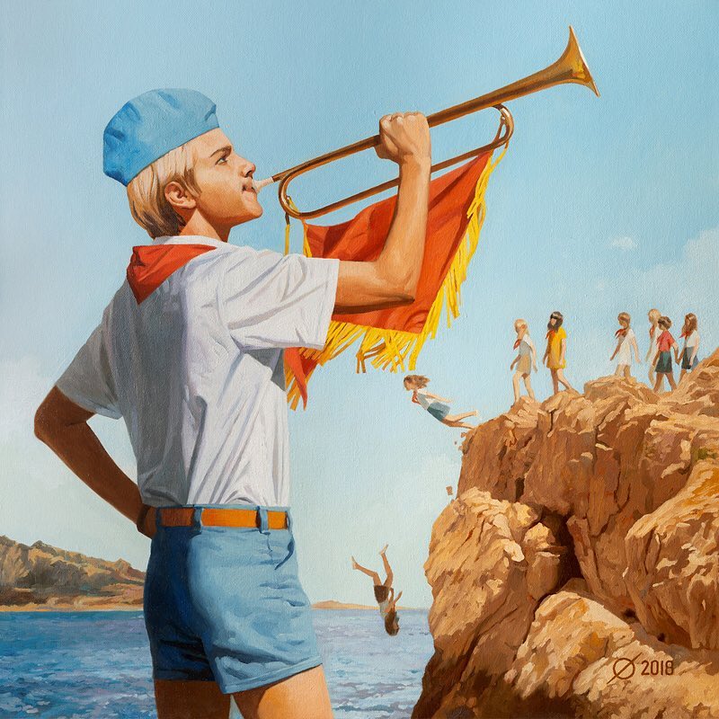 Герои их плакатов — пионеры, спортсмены, космонавты, некоторые из них выглядят именно так, какими их помнит страна. К другим же привнесены штрихи неожиданного. Тебе точно понравится и то и другое. Так что перекрестись перед комсомольским вымпелом и начинай осмотр галереи.