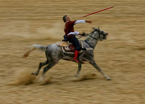 Жених с друзьями хвастаются друг перед другом доблестью и мерятся силой. Свою разминку перед посещением загса они называют «джирид», подразумевая под этим коротким словом скачки на лошадях с метанием дротиков. (В конце концов, жениху сегодня ночью предстоит тоже попасть в цель, поэтому друзьям нужно поддержать его морально.)