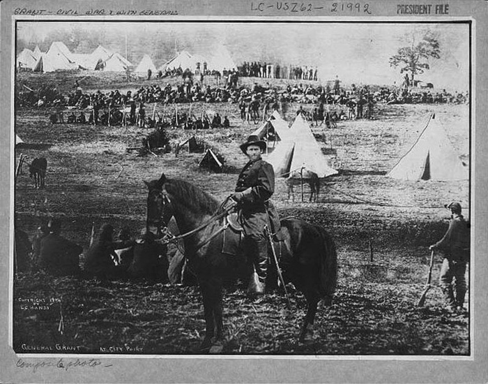 Эта фотография американского генерала Улисса С. Гранта стала исторически важной. Храбрый генерал показан перед его войсками, сидя на лошади с героическим взглядом во время Гражданской войны в США.